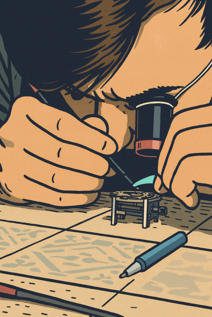 Contrairement à l’horlogerie haut de gamme suisse ou aux écoles spécialisées, la pratique ne nécessite pas des années d’apprentissage formel. On commence avec des outils basiques (paire de brucelles, lève-aiguilles, etc.) et des tutoriels en ligne (YouTube, forums). Cela permet à des amateurs passionnés d’apprendre les bases de la mécanique horlogère : posage, assemblage, réglage, etc.